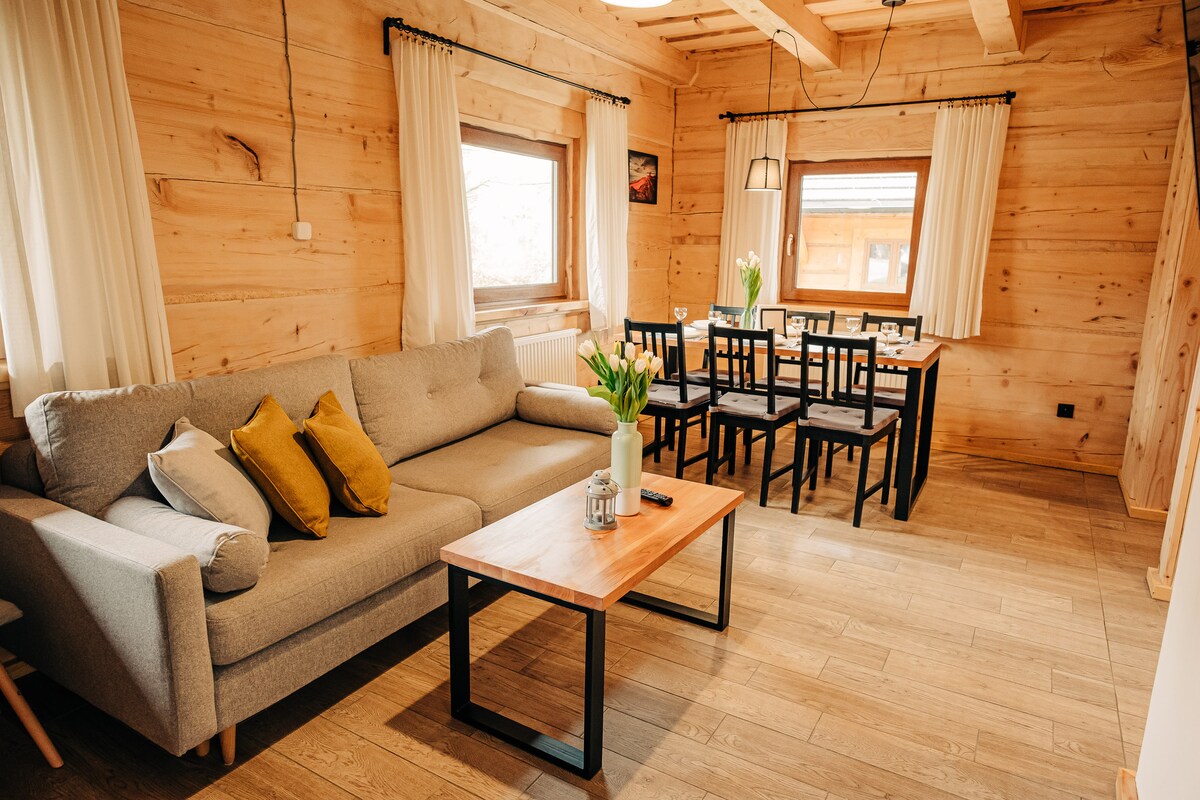 Сучасний, цілорічний лофт-котедж із власною СПА-зоною в центрі Бещадських гір. Сауна, подвійна гідромасажна ванна та гідромасажна ванна на терасі. Дві спальні, кондиціонер, повністю обладнана кухня, вітальня з диваном і телевізором, ванна кімната з пральною машиною. Зовні є місце для багаття, тераса та шезлонги. Постільна білизна, рушники, халати та кава в капсулах включені. Паркінг і незабутня атмосфера в одному пакеті! Відпочиньте і розслабтеся. Якщо ви користуєтеся ванною, стягується додаткова плата в розмірі 150 злотих за перебування.