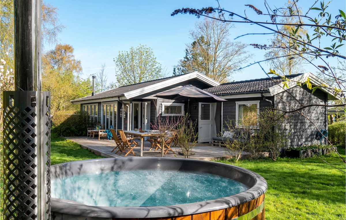 Насолодіться тижнем відпочинку в затишному літньому будинку всього за 130 м від прекрасного пляжу. Будинок площею 55 кв. м був відремонтований у 2021 році. Є одна спальня з двоспальним ліжком і диван у вітальні, який можна перетворити на ліжко. Кухня оснащена духовкою, холодильником та посудомийною машиною. Ванна кімната з душем та невелика житлова зона з дров’яною піччю. Зовні є велика дерев’яна тераса (130 м²), гідромасажна ванна на дровах для зимового перебування, а з 42-го тижня 2025 року – приватна сауна. Тихе місце.