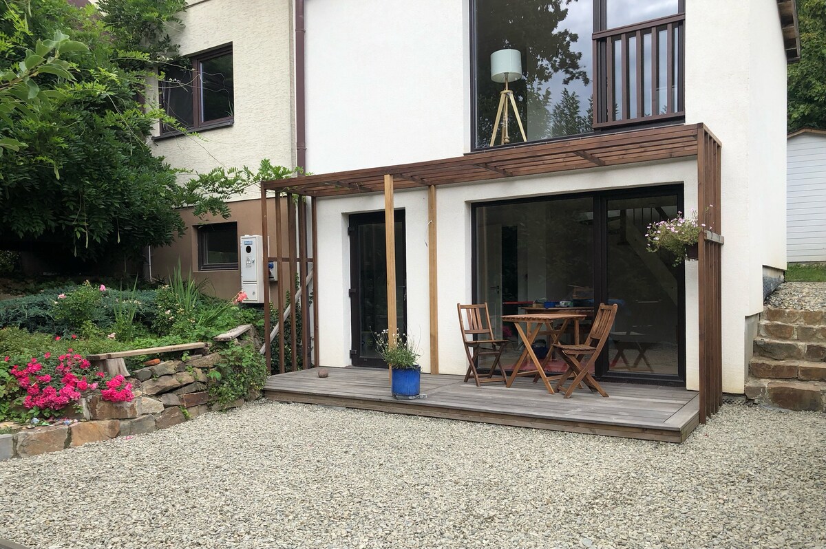 Наша квартира в Бьещаді - це окрема частина дерев 'яного будинку з окремим входом і виходом безпосередньо до великого саду. Будинок розташований в невеликому поселенні, оточеному лісами, на кордоні ділянки протікає ручей Мікові. Велика кількість пішохідних стежок у цьому районі, гул струмка, чисте повітря, небо, де можна побачити всю молочну дорогу в ясну ніч, вечірні вогнища - це лише невелика частина того, що ми можемо відчути. Ми, господарі, можемо бути на місці в іншій частині будинку.