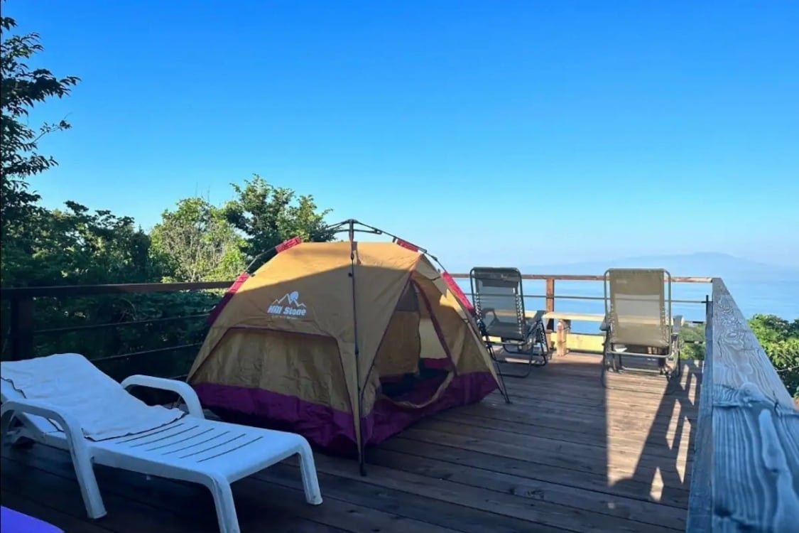 Кемпінг із цілодобовими зручностями, включаючи приватну сауну та терасу з видом на затоку Сагамі. Цей скандинавський лаундж є ідеальним місцем для початківців глемпінгу, оскільки в помешканні є різноманітні глемпінгові намети, які можна орендувати, щоб відповідати вашим потребам. У вітальні є лофт, ліжко, робочий стіл, холодильник і все необхідне для вашого комфорту. Японська приватна сауна доступна для використання в будь-який час. Також є три стільці Coleman для води та купання на відкритому повітрі.