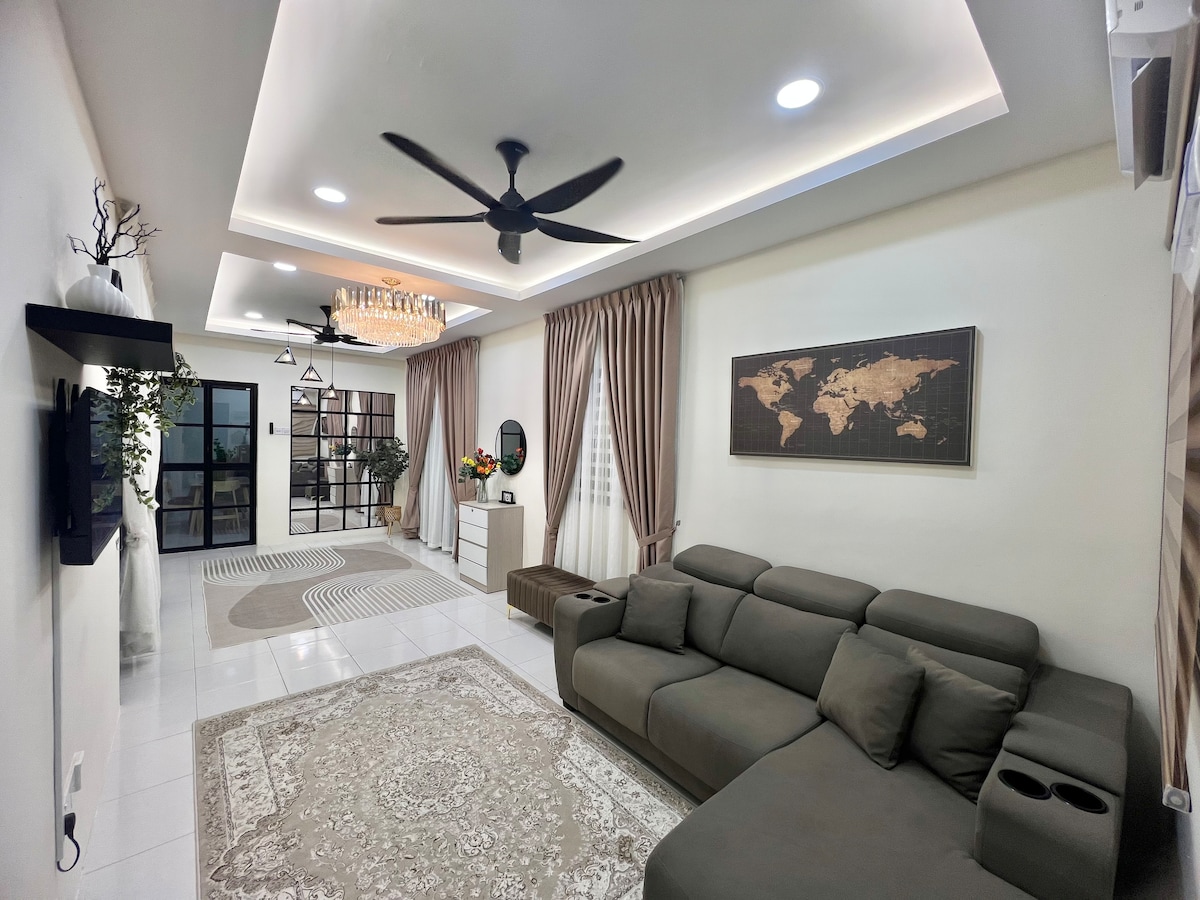 suitable for guests who want comfort and enjoy vacation time.beautiful building and all beautiful furniture.. the location is in a friendly and safe place. location at taman sri bahagia behind smk and sk kg bahagia. -3 bedrooms all airconds and 2 bathrooms with water heater -TV 50' with sound system -wifi, netflix -comfortable sofa -kitchen with full cooking utensils - rice cooker - refrigerator - microwave - washing machine