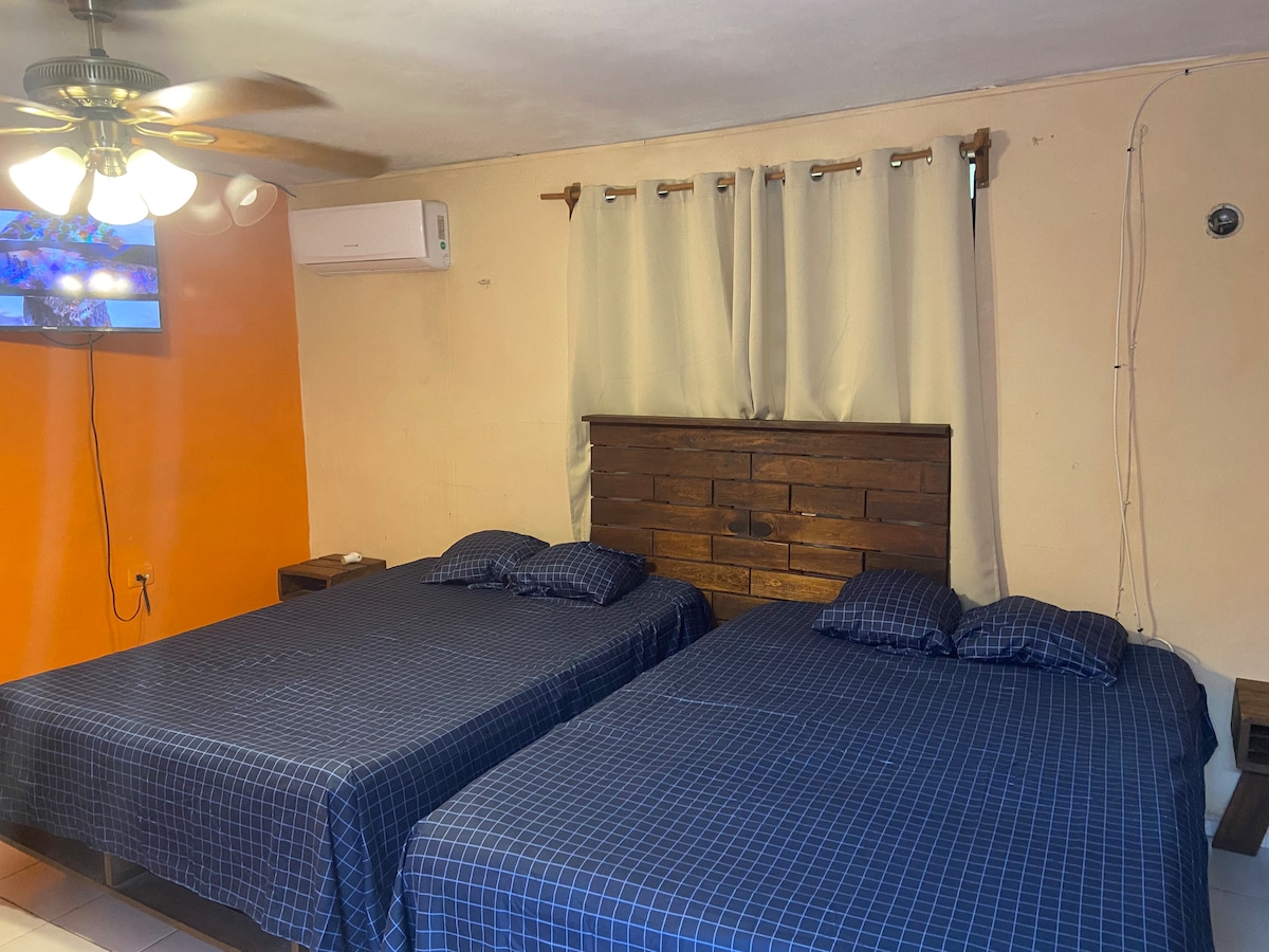 Зручна та красива кімната з чудовим розташуванням. Тихий і безпечний простір. Зручне ліжко, кондиціонер, вентилятор, стіл для гамака, робочий стіл, залізна шафа, фен, Wi-Fi, міні-кухня : холодильник, мікрохвильова піч, мікрохвильова піч, електрична сковорода, кавоварка. Незалежна тераса. Чудове розташування, два квартали від комерційної площі, легкий доступ до громадського транспорту. Сім хвилин від Avenida PASEO DE MONTEJO, 10 хвилин від історичного центру. Цілодобовий магазин.
