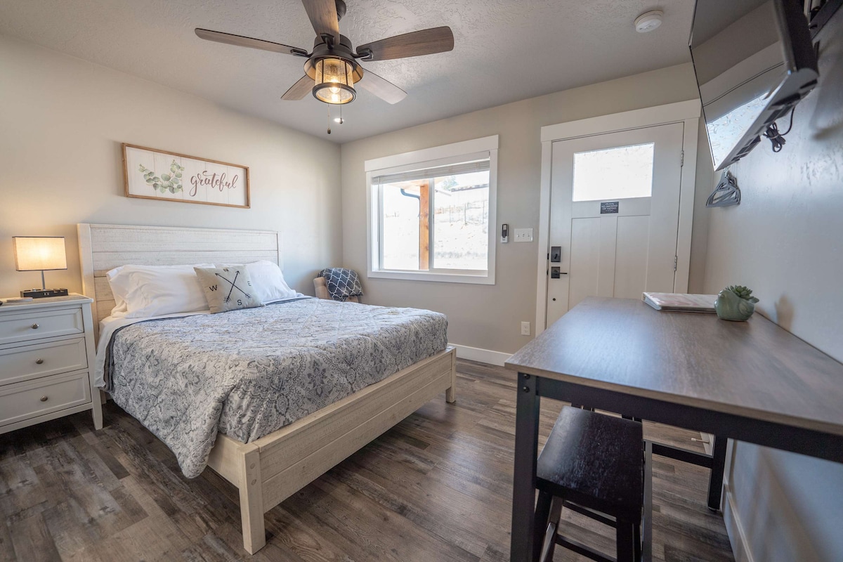 Цей просторий будинок із 4 спальнями та 3 ванними кімнатами розташований у центрі міста Канаб – лише за 30 хвилин до Національного парку Сіон і в межах легкої досяжності від Брайс-Каньйону, Гранд-Каньйону, озера Пауелл і Коралових рожевих піщаних дюн. ✔ Пішки до ресторанів, кав’ярень і стежок ✔ Wi-Fi зі швидкісним з’єднанням + робоче місце ✔ Приватний задній двір з гамаком і барбекю ✔ Ігри для сімей + подвійні холодильники Незалежно від того, чи ви подорожуєте дорогою, чи ходите в походи в Зайон, чи досліджуєте Могутню п’ятірку Юти, це ідеальна база для дому.