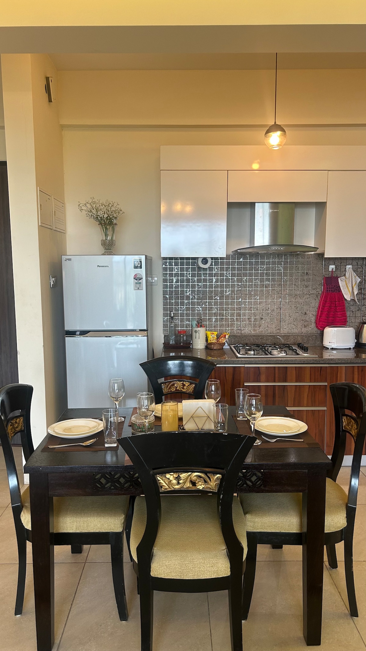 Cozy 1BHK, 8 mins from Mandwa Jetty—your lush green escape! Perfect for a breezy weekend, relaxing workcation, or longer stay. Sunlit living room, cloud-like queen bed, balcony for morning coffee, and a chic bathroom with rainfall shower. Fast Wi-Fi, iron, hair dryer, and essentials included. Unwind in quiet surroundings with beaches and cafés nearby, with Swiggy and Zomato delivering to the area for added convenience. Where work meets wanderlust—come recharge by the sea!