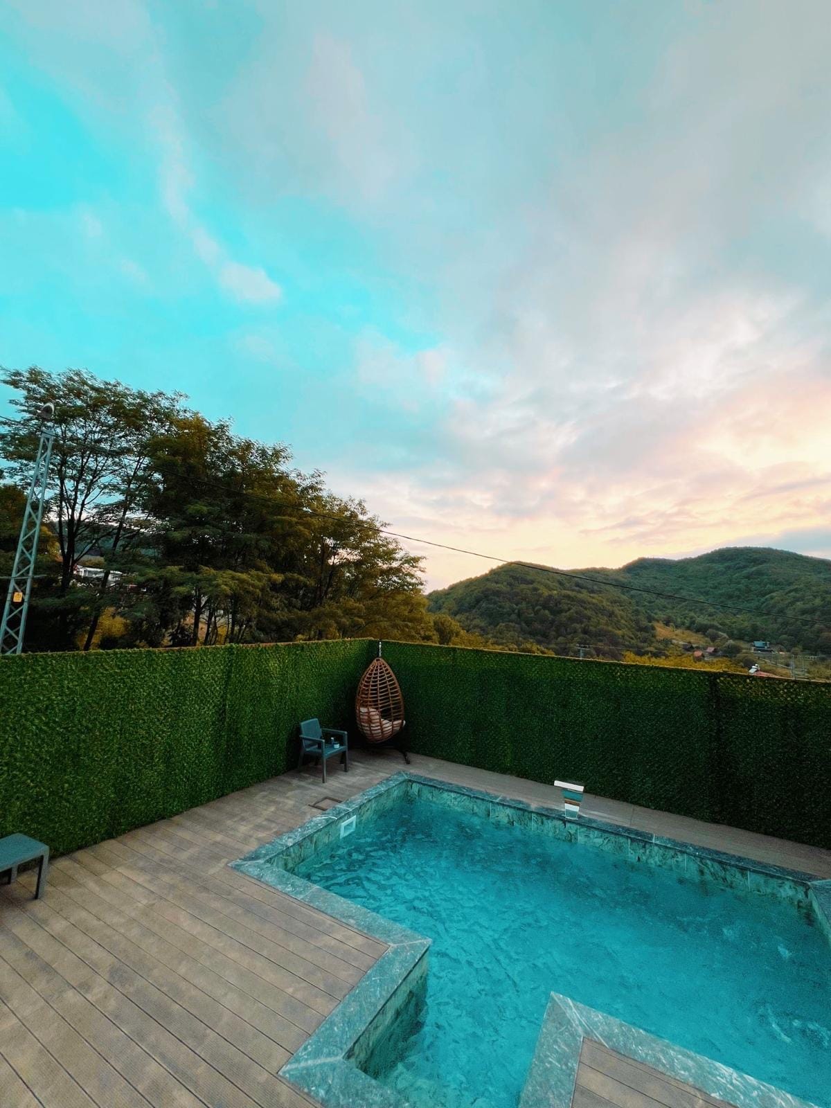 Бунгало з джакузі та видом на гори, басейн відкритий влітку