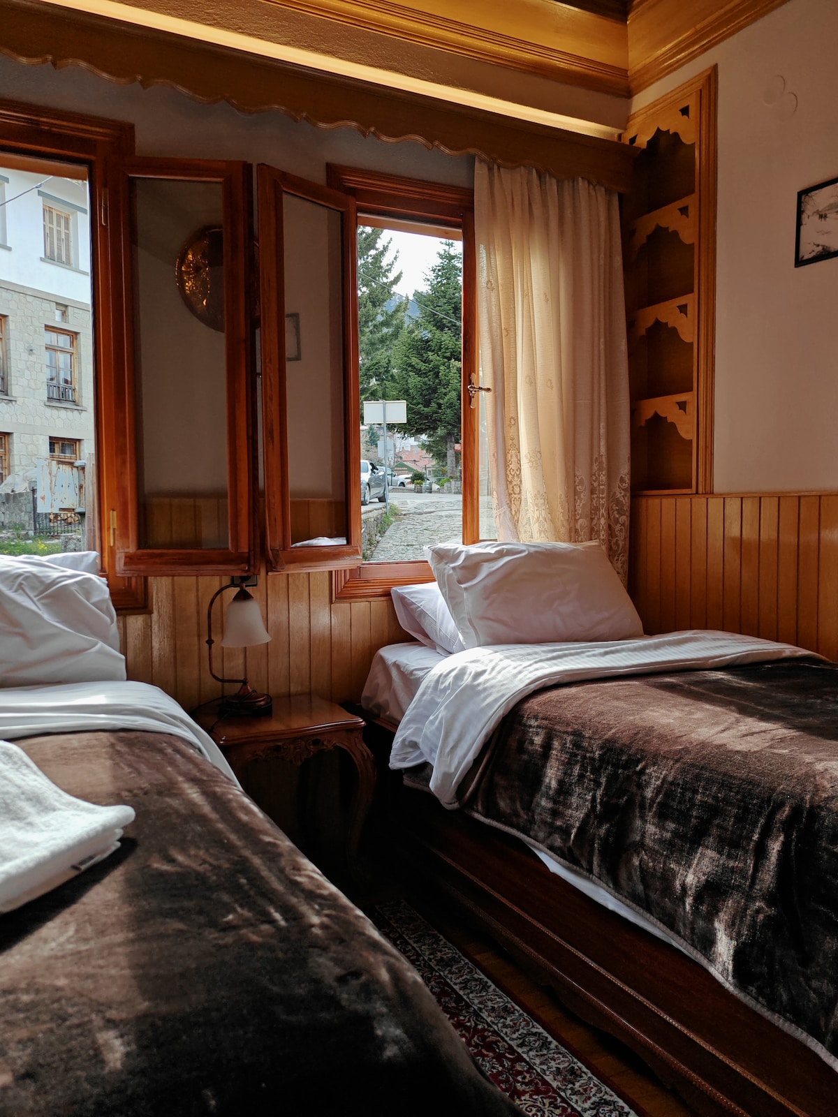 Keep it simple at this peaceful and centrally-located place.What makes us truly unique is the effortless access. We are located literally in the heart of Metsovo, on a completely flat path — no steep hills or exhausting stairs to reach your door. Experience authentic Metsovian architecture featuring handcrafted wooden ceilings and floors that radiate warmth and mountain charm. Every local landmark, from the main square to the famous wineries, is just a few steps away on level ground.