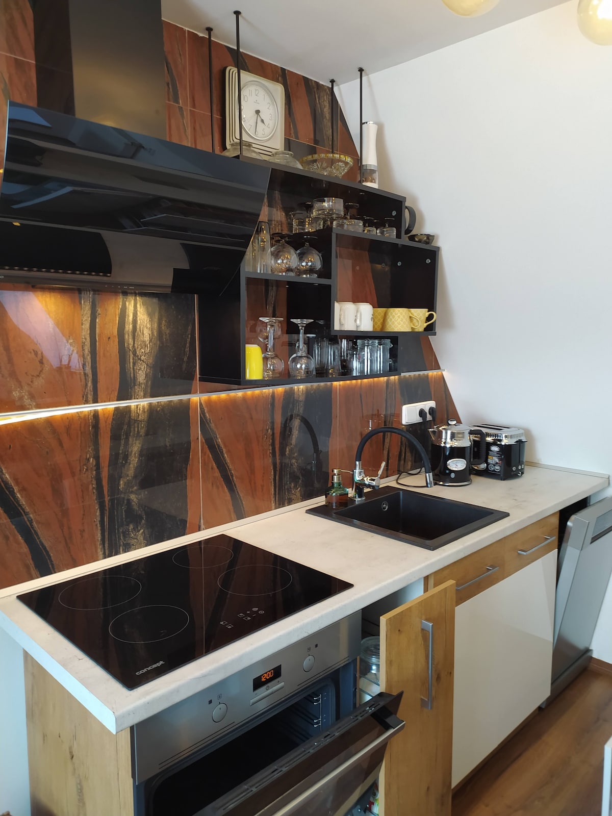 в одній спальні обладнана квартира з власною кухнею, ванною кімнатою, туалетом. Він зручний для двох-чотирьох осіб і розташований в центрі на тихій вулиці, всього за 400 метрів від пішохідної зони, за 100 метрів від супермаркету LIDL і за 300 метрів від Spa5. ціни не включають міський збір у розмірі 1 євро/особа/ніч, який ми стягуватимемо по прибуттю