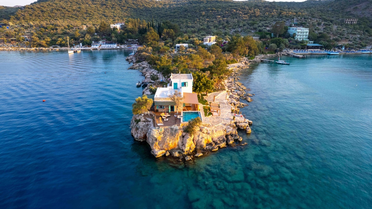 Bizim Ev Kaş – це приватна вілла, розташована на острові в районі Каш-Ліманагзи, оточена бірюзовою водою та смарагдово-зеленою природою Середземномор'я. Тут ви проведете незабутній відпочинок завдяки інтер'єрам, що поєднують антикварний і сучасний дизайн, приватному пірсу, прикрашеному бугенвілеєю, та відкритим просторам, де можна розслабитися. Це ідеальне місце для тих, хто шукає спокою, усамітнення та відпочинку на лоні природи.