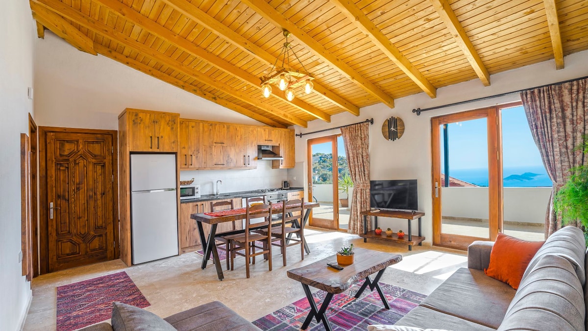 Дивовижний пентхаус у тихому центрі Каша, вул. Лікья Великий дах (35 кв. м) виходить на порт Каш та острів Мегісті (Кастелоризо), а ззаду — на лікійські гробниці, вирізані в скелях. Повністю обладнана кедровою деревиною, якісними світильниками та фурнітурою.