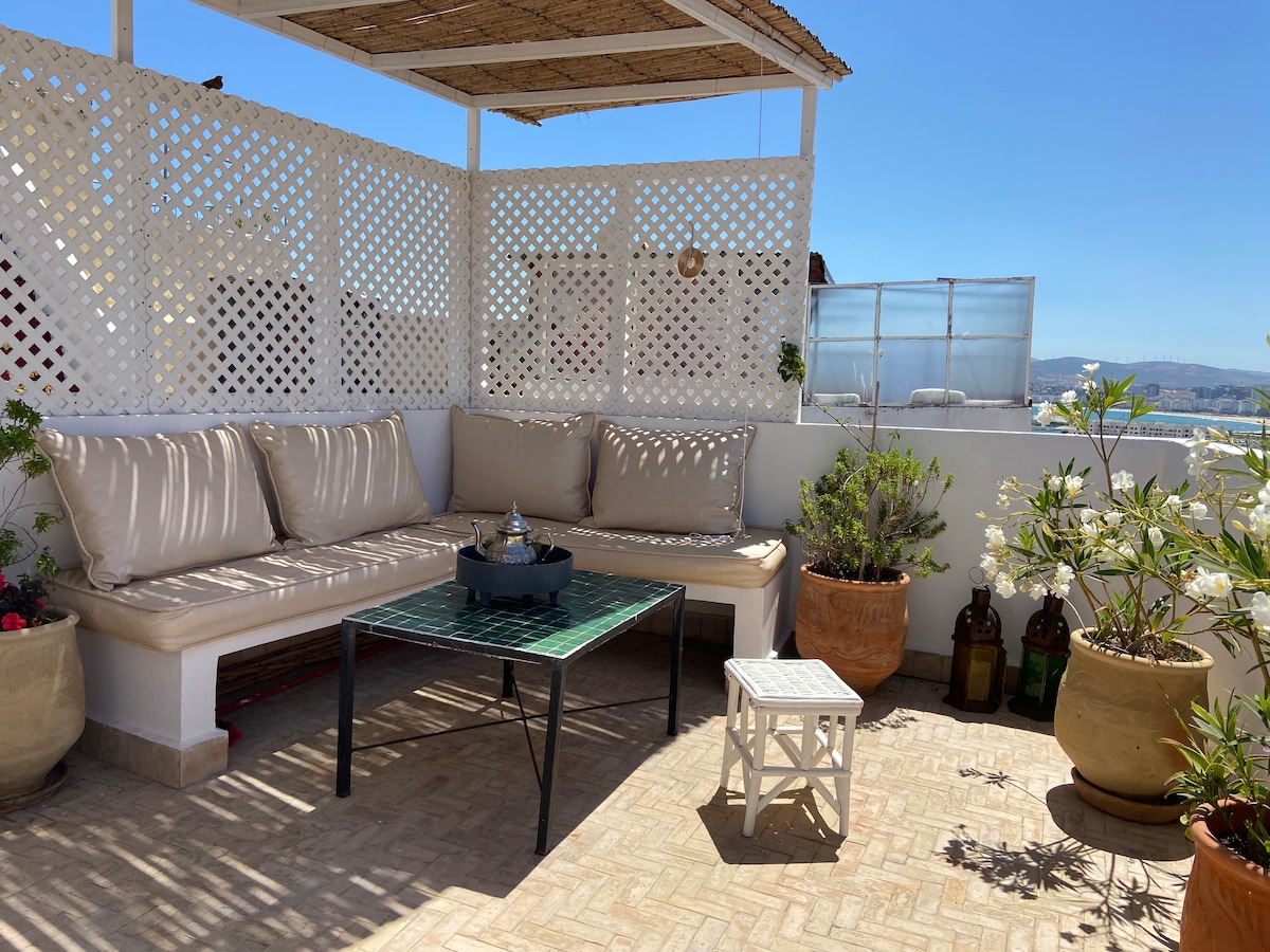 Ласкаво просимо до нашого затишного відпочинку Tangier у центрі Старої Медіни. Цей 1-кімнатний Airbnb пропонує поєднання історичного шарму та сучасного комфорту. Відпочиньте в традиційній марокканській спальні, відпочиньте у вітальні з диваном-ліжком і насолоджуються приголомшливим видом на Медіну з тераси. Пориньте в культуру та історію Танжера. Крім того, ми допомагаємо автомобілям як власник агентства з розташування автомобілів за дешевими цінами