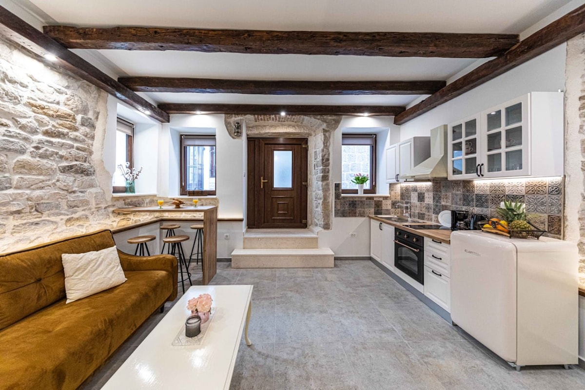 Цей чарівний 3-поверховий будинок, побудований у XVI столітті, є приголомшливим прикладом традиційної середземноморської архітектури. Нещодавно відремонтований, він чудово поєднує старовинний шарм кам’яних стін із сучасними зручностями. Розташована в центрі Каштеля Старі, прямо на площі Брце, вона пропонує спокійну атмосферу всього за 50 метрів від моря. Пориньте в історію, насолоджуючись легким доступом до магазинів, ресторанів і міст, які є об’єктами Всесвітньої спадщини ЮНЕСКО, таких як Трогір і Спліт.