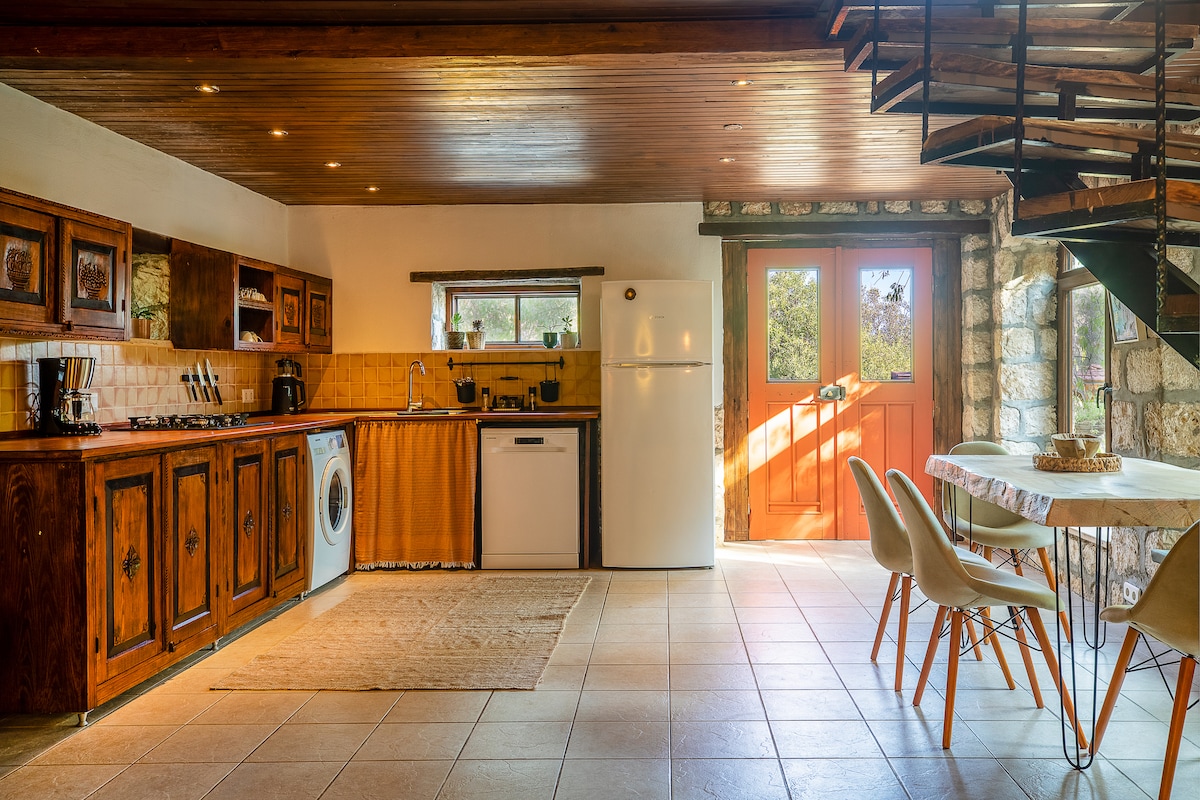 Спокійний кам’яний будинок на нашій маленькій фермі пермакультури в найкрасивішому селі Каша. Цей дизайнерський будинок, оточений оливковими деревами та приголомшливими краєвидами, пропонує приватність, природу та спокій. Прогуляйтеся по каньйонах або відпочиньте в гамаку. Повністю обладнана кухня, швидкий Wi-Fi та самостійне прибуття. Ідеально підходить для пар, мандрівників наодинці або невеликих сімей. Продуманий спосіб життя на природі