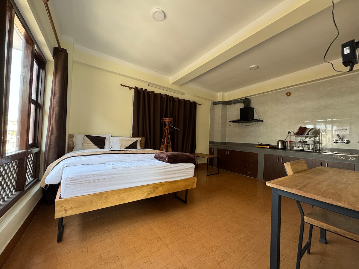 Насолоджуйтеся сучасним перебуванням всього за кілька кроків від жвавих вулиць Тамеля, Катманду. Цей гарно облаштований люкс-студіо пропонує комфорт і зручність в одному з найбільш доступних районів міста. Гості також мають доступ до спільної тераси, яка ідеально підходить для насолоди свіжим повітрям, чашкою кави або спокійними ранковими краєвидами, перш ніж вирушити на огляд Катманду. Сучасна та спокійна атмосфера ідеально підходить для пар, соло-мандрівників або віддаленої роботи.