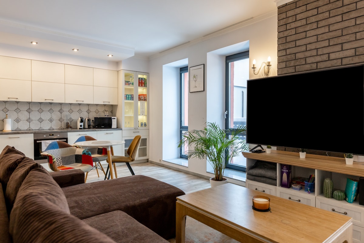 Відчуйте елегантне міське життя в цій чарівній квартирі, розташованій поруч з історичним Президентським палацом. Він розташований там, де проспект Свободи зустрічається зі Старим містом. Насолодіться теплим, стильним помешканням у центрі міста, оточеному кафе, парками та культурою. Ідеально підходить для тих, хто любить комфорт, характер і близькість до всього, що може запропонувати Каунас. Ми любимо подорожувати і знайомитися з новими людьми, і ми хочемо, щоб ви почувалися тут як удома. Це нещодавно відкрите помешкання готове прийняти вас!