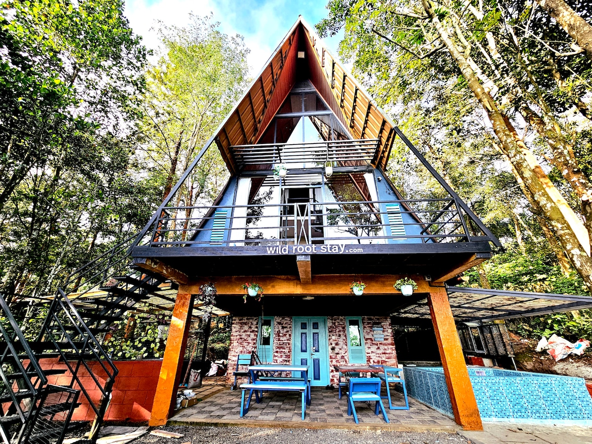 Discover Orchid Villa, a charming A-frame cabin nestled in the heart of nature's embrace. This cozy retreat offers the perfect blend of homely comforts and a rustic "living with nature" experience. Whether you’re seeking a peaceful escape from city life or a friends getaway, our unique accommodation provides an unforgettable stay.Serene lush greenery, Unwind in our luxurious hot dip jacuzzi, perfect for a relaxing soak under the stars, even on a rainy night will enchante your stay.