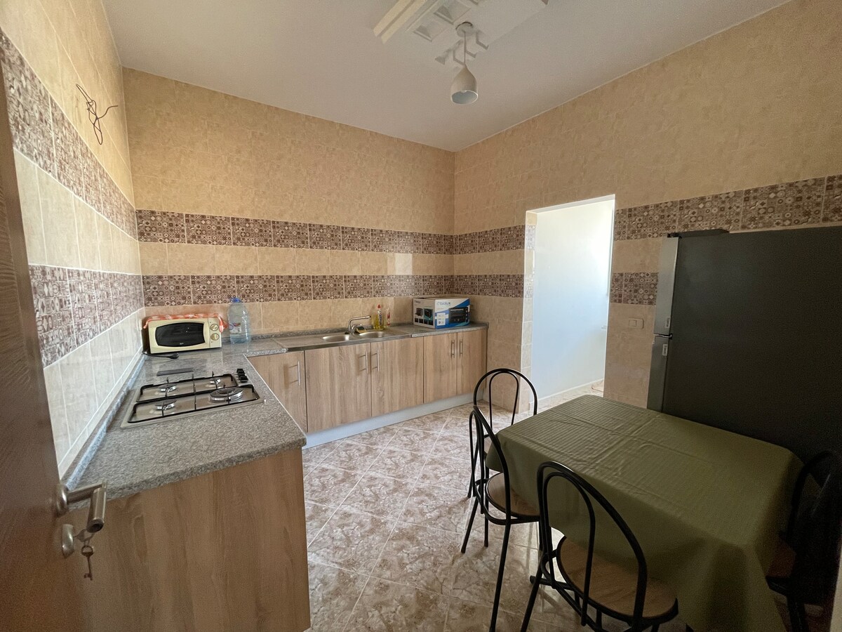 Profitez en famille de ce fabuleux logement , dans une résidence toute neuve, qui offre de bons moments en perspective. Il est situé à jemna -Kebili, ville à partir de laquelle vous pourrez partir en voiture explorer les magnifiques paysages du Sud tunisien. Il est à 10min de Douz. Jemna est reconnue pour proposer parmi les meilleurs dattes du pays. De fin octobre à mi-février, vous pourrez profiter du marché dédié à la vente des dattes.(Le logement est situé en face.)