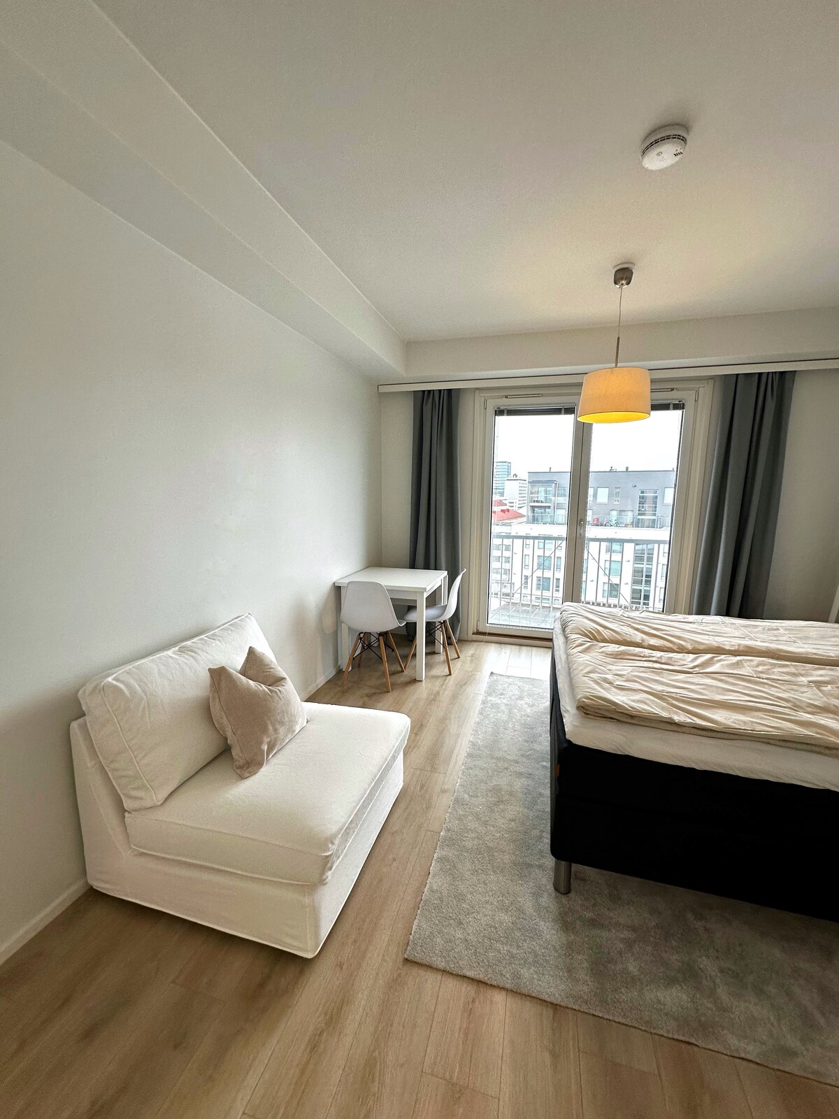 Чудова студія у відмінному місці! Яскрава та простора студія розташована поруч із парком Айнола. У декількох хвилинах ходьби від центру. У квартирі є високоякісне обладнання: наприклад, індукційна плита, вбудована духовка, сушильна машина. Квартира має стильний інтер 'єр і красивий посуд. Двоспальне ліжко 160 см і третє ліжко як надувний матрац. Великий балкон зі склінням із групою для сидіння. 43-дюймовий смарт-телевізор (наприклад, Netflix), високошвидкісний Інтернет (200/200).