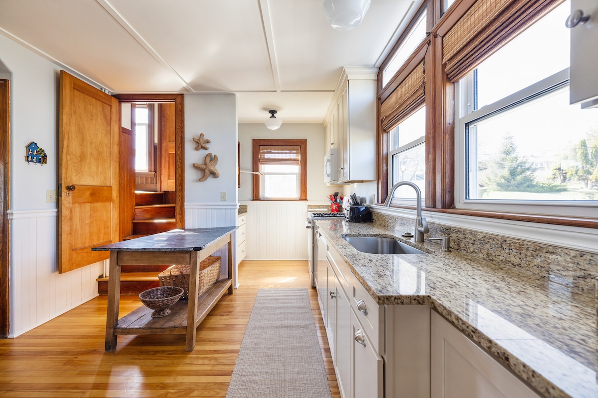 Ідеальне розташування: 350 кроків до прекрасного пляжу Гуча. Легка прогулянка або коротка поїздка до площі Док-сквер у Кеннебанкпорті з магазинами та ресторанами. Це верхній поверх 2-поверхового будинку з 2 квартирами. Сонячна та весела квартира з відкритим планом, газовим каміном та великою задньою терасою. До вартості входять Wi-Fi та телебачення з прямими трансляціями. Відкритий душ. Надаються пляжні крісла/рушники. Пішки до пляжу та міста. Мінімум 7 днів, прибуття/виїзд у суботу з липня по серпень 2026 року.