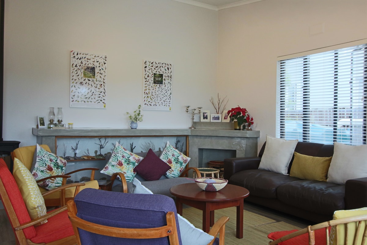 Ідеальне розташування. Пішки до пляжів, річки Карієги, Піцерелли та Джеррі та пішки до селища Відкритий план, з видом на північ, просторий/стильний сімейний будинок на узбережжі. Чотири спальні з суміжними кімнатами. Мрія артиста - у приміщенні витікає на чудову терасу з видом на Кентон і подвір 'я з місцем для багаття. На затишній терасі, що спирається на природний заповідник, є гідромасажна ванна та браай. Обслуговується щодня. Безперебійна електроенергія. Відмінний WI-FI і робота з дому. Резервуари для дощової води.
