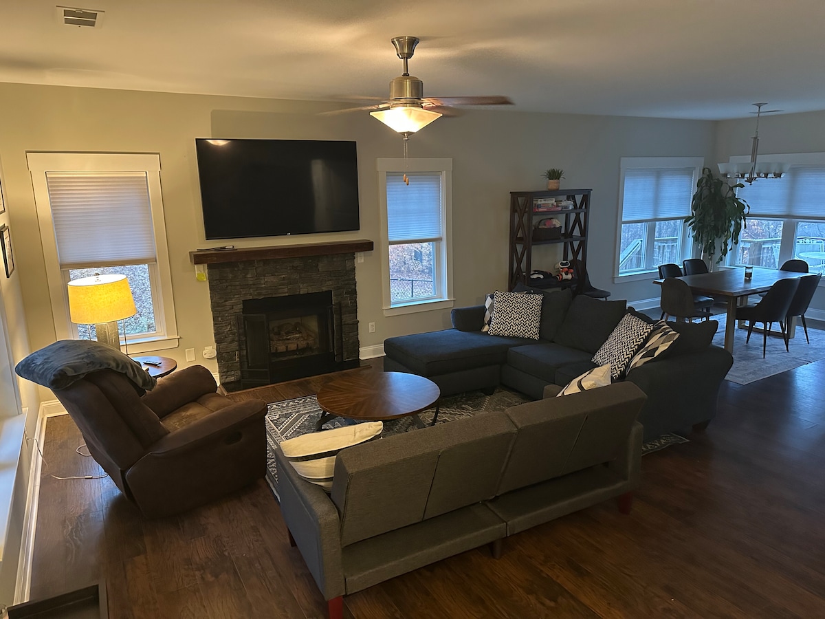 Наше помешкання розташоване в історичному окрузі Луїза в Центральній Вірджинії на лісистій ділянці площею п 'ять акрів з видом на річку Південна Анна. Річмонд знаходиться в 30 хвилинах їзди, а Шарлотсвілл - менш ніж за годину. Весь нижній рівень нашого помешкання використовується для Airbnb. (Ми живемо на верхньому рівні.) Декор «домашній» з деякими особистими речами. Діти, домашні тварини та куріння заборонені. Інтернет швидкий, а мобільні телефони працюють за допомогою викликів Wi-Fi. Доставка їжі недоступна через наше віддалене розташування.