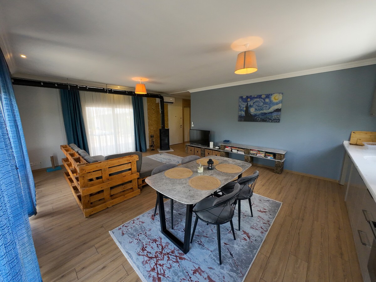 Повністю обладнана квартира 2+1 площею 90 м2, придатна для сімейного використання.