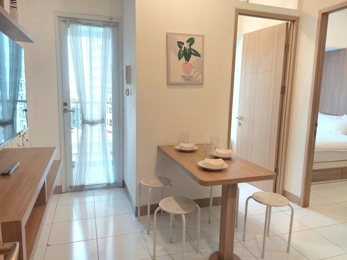 Welcome to our vibrant and playful 2-bedroom, 1-bathroom, 1 kitchen, apartment! Price doesn't include parking fee for the apartment. For Car : IDR 4000/ hour. For Motorcycle : IDR 2000/ hour. Have a staycation with us , and explore the market place with various restaurant right on the ground floor of each tower called " TOKYO HUB" and explore the advance living with us ^^