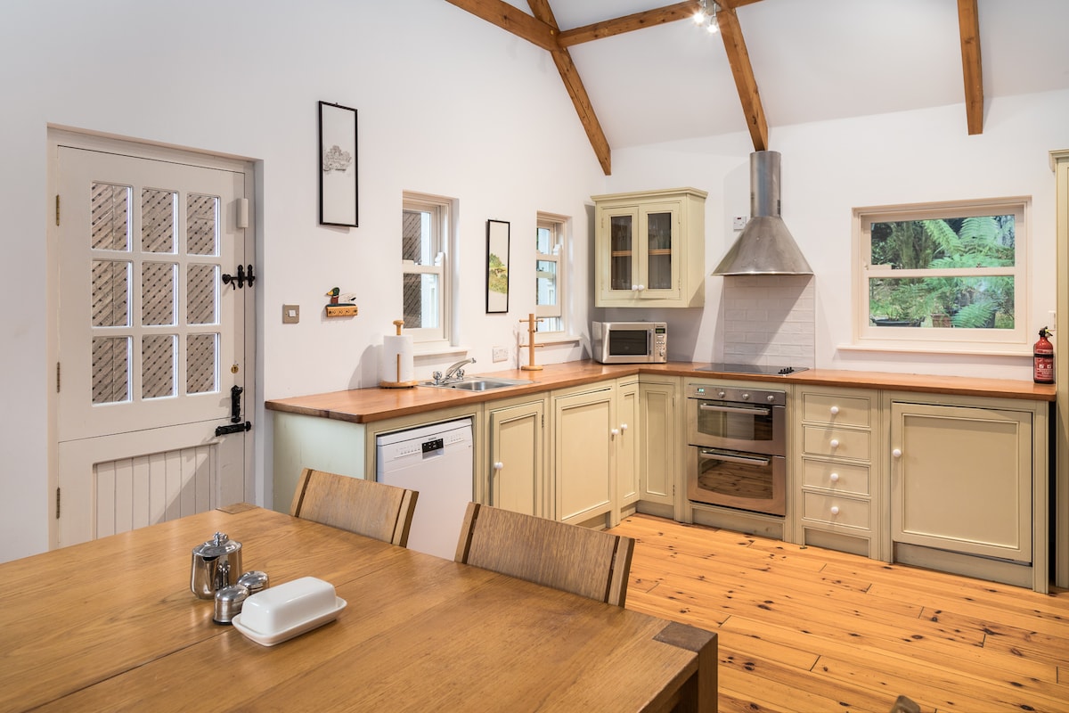 Привабливе та затишне помешкання - розслабтеся під відкритими стелями з балками. Tigin - це однорівневий будинок, 1 спальня з ліжком розміру «queen-size», 1 ванна кімната з великим душем, заміський будинок відкритого плану з привабливою вітальнею/кухнею. Збудована абсолютно нова у 2007 році. Кухня повністю обладнана, також є пральна/сушильна машина. Ідеально підходить для пар на тиждень.