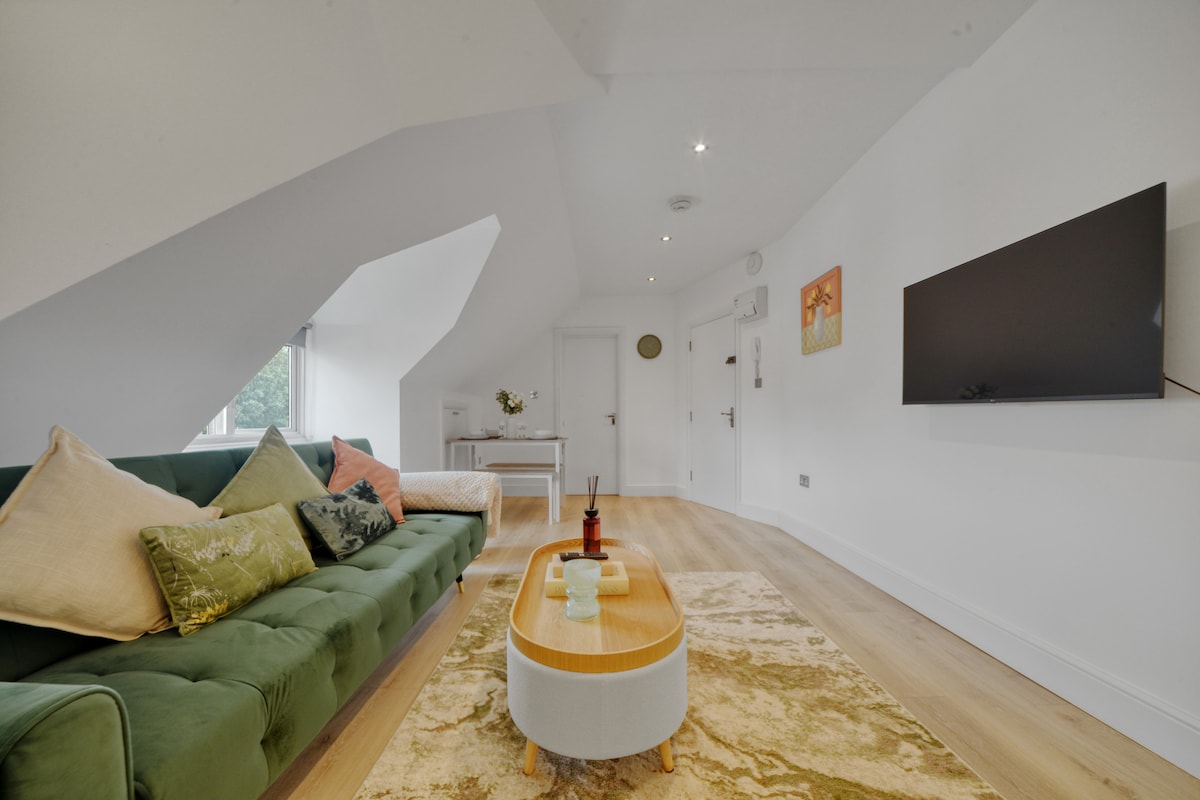 Прокиньтеся й підніміть автоматичні жалюзі безпосередньо з ЛІЖКА РОЗМІРУ SUPER KING SIZE і захоплюйтеся ВИДОМ на прекрасну долину Дейрент, що розгортається перед вами через вікна з картинами. ОБІЙМІТЬСЯ в затишному кріслі з книгою, послухайте улюблену музику або ДОСЛІДЖУЙТЕ багато пішохідних доріжок уздовж долини. Прогуляйтеся полями до сіл Отфорд і Шорхем, відвідайте ІСТОРИЧНІ БУДИНКИ та виноградники або просто залишайтеся вдома і насолоджуйтеся просторою квартирою-студією, дивлячись на захід сонця з келихом вина