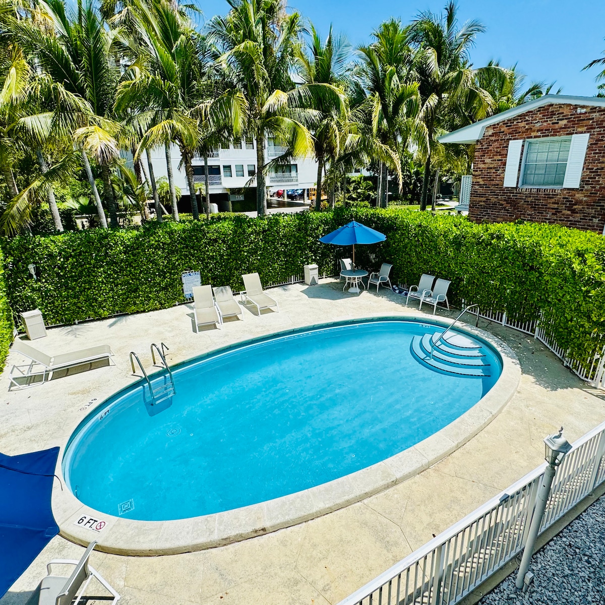 Charming 1 bedroom apt with a pool, centrally located in the gorgeous island of Key Biscayne. Sleeps up to 4 people as there is a King Bed in bedroom & sofa bed in the living room. Steps away from the nearest grocery store, restaurants, shops and parks while also being 1.5 blocks away from private beach with private access. 13 minute drive to the heart of Brickell 15 minute drive to Coconut Grove 25 minute drive to Miami Beach