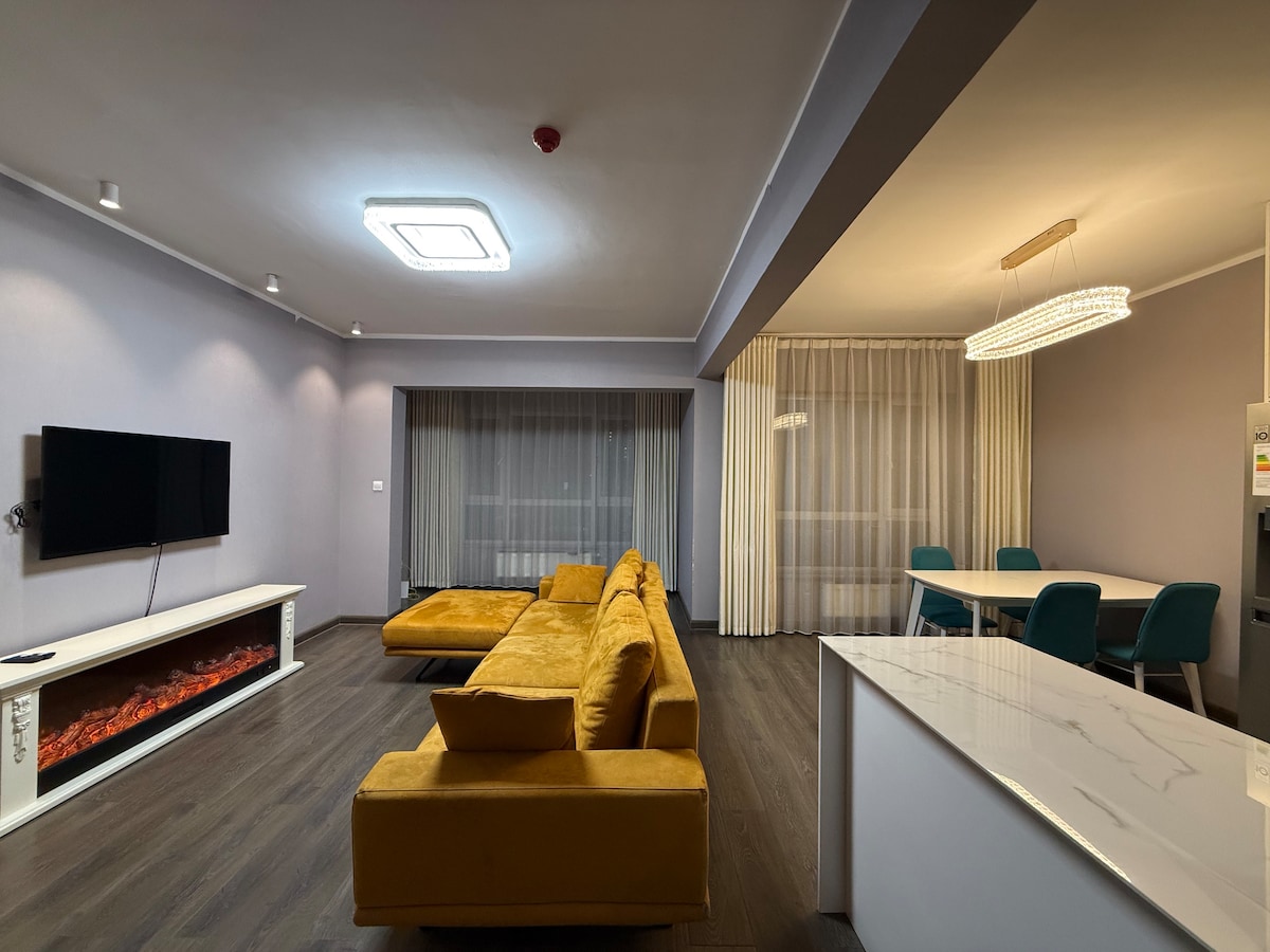 Modern 73 sqm 2-room apartment just 8 minutes by car from Sukhbaatar Square. Ideal for business travelers, couples, and families. Surrounded by restaurants, banks, shopping centers, fitness, beauty salons, and international grocery stores within 100 meters. Newly built, clean, and comfortable. Fully equipped kitchen, fast Wi-Fi, Smart TV, washing machine, automatic bidet toilet, bathtub & shower. Business lounge downstairs. Self check-in with smart lock. Quiet and convenient location.