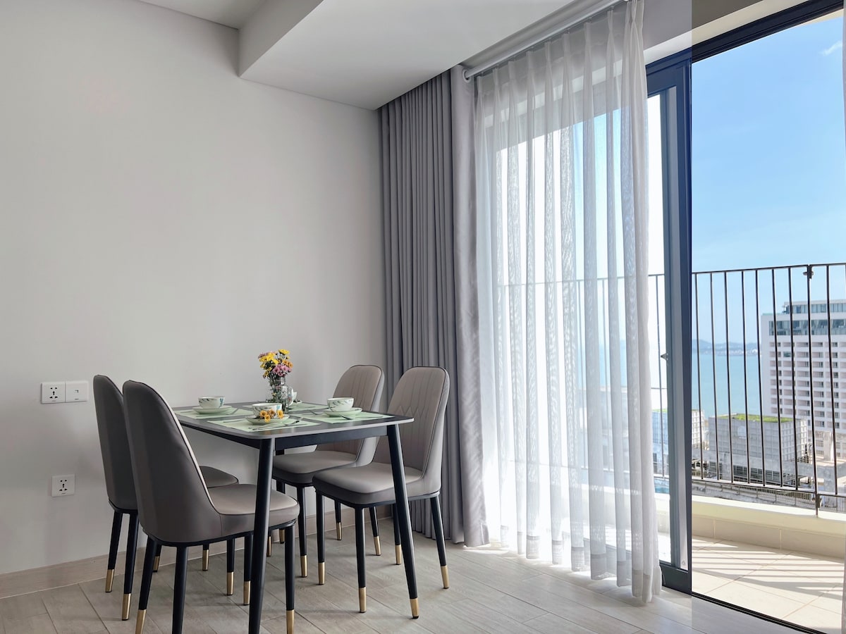 Cozy and Morden 1 bedroom on the 27th floor. Feel like home when spending a night here! Every detail in the apartment is come with art spirit. Với phong cách nhẹ nhàng tinh tế, căn hộ 2716 tầng 27 sẽ mang đến cho bạn một không gian nghỉ dưỡng lý tưởng. Nằm trong quần thể Mường Thanh Viễn Triều, gần bãi biển Hòn Chồng thơ mộng bạn sẽ được thoả thích tắm biển chỉ một phút đi bộ.
