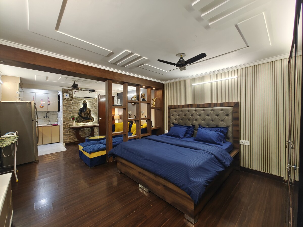 *Це апартаменти з однією спальнею, повністю для гостей. (На 2-му поверсі) * У пішій доступності від станції метро «Рохіні сектор-18» (жовта лінія) * У нас є ключові театри/парки/торгові центри/лікарні в межах 3-5 км* *Безкоштовний сніданок для двох осіб за все перебування. *Сніданок за додаткову плату* *Доступна повністю функціональна кухня* * У приміщенні квартири є тренажерний зал на відкритому повітрі* *Налаштування робочого місця в офісі