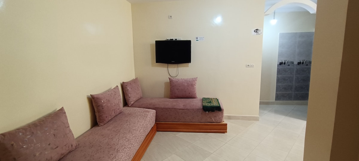 selon loi marocain les couples non marié interdit. Créez des souvenirs dans ce logement unique et familial.Appartement au rez-de-chaussée, idéal pour découvrir Khenifra et ses environs. Une chambre parentale avec douche, deux salons (grand et petit) avec TV et wifi. Proche de tous les commerces, calme et frais sans clim. Parfait pour explorer les lacs, forêts de cèdres et cascades la journée, et profiter de l’ambiance vivante de la ville le soir.