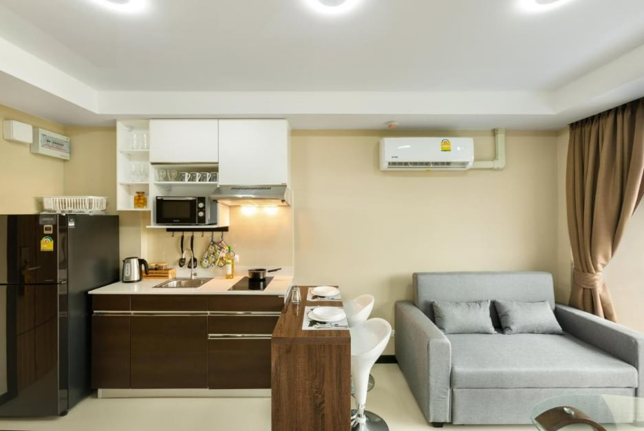 Свіжо мебльована 1 кімната-студія з 1 ліжком queen-size, до 2 осіб. Кондотель 777 знаходиться всього в 1,4 км від пляжу Май-Као. У помешканні є кухня з гарячою плитою, холодильник з морозильною камерою та пральна машина. Також доступні кондиціонер, смарт-телевізор та WI-FI. До 7eleven для повсякденних потреб можна дістатися за 500 м. За додаткову плату доступні до 2 скутерів. Трансфер з аеропорту до готелю можна здійснити за запитом.
