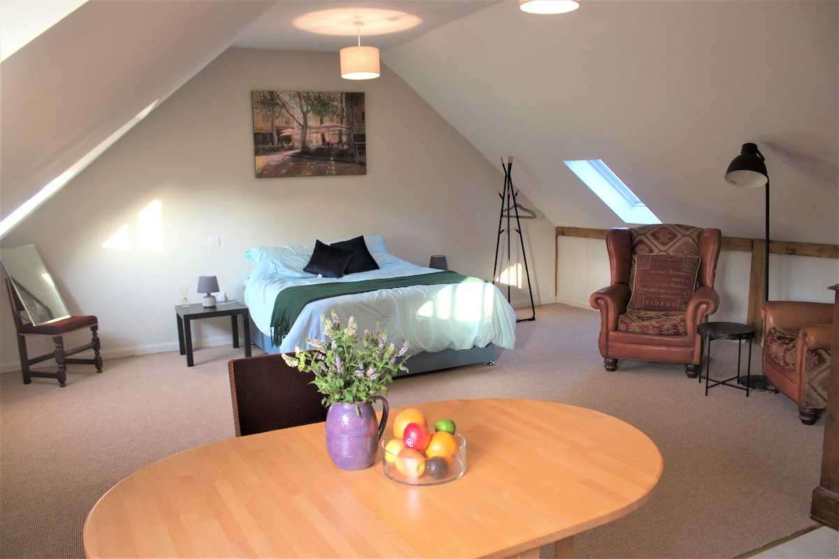 Стодола, побудована в 1634 році, розташована на околиці села в 5 хвилинах їзди від Маркет-Гарборо в Лестерширі. Перетворений у 2017 році, він знаходиться на нашій території, але є окремим помешканням. Світла і повітряна кімната/відкритий планом на нижньому поверсі, з зонами для приготування їжі, їдальні та відпочинку. Французькі двері ведуть у гарний сад у дворі з кам’яними сходами до піднятої ділянки, звідки можна спостерігати за заходом сонця над полями. Нагорі є добре обладнана спальня та ванна кімната з панорамним видом на сільську місцевість.