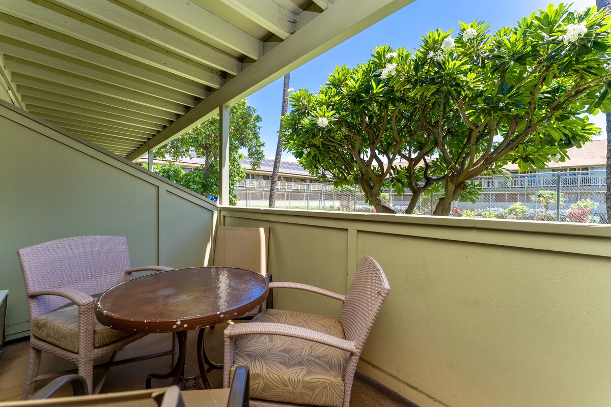 This Maui Vista condo is on the 3rd floor of a 4 story building. Locally, it is called the quiet building. It is the farthest from the road. It is on the cool side of the building with nice trade winds. It has views of the West Maui Mountains and peek-a-boo ocean views from the lanai. From the entrance side of the condo, you have views of the Haleakala volcano.
