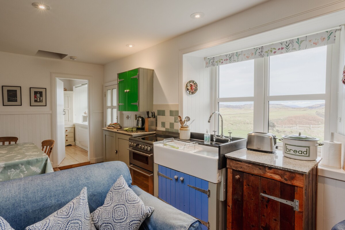 Це унікальне місце має власний стиль. Розташоване на вершині пагорба з приголомшливим видом на звук Sleat, звідки відкривається захоплюючий вид на острови Ейгг і Ром, а також у найвіддаленішому західній точці Шотландії. Або сидіти і відпочивати на вулиці на терасі, або вниз біля вогнища, насолоджуючись спокоєм і спокоєм. Насолоджуйтеся розслабляючою перервою та затишним помешканням з підігрівом підлоги на вулиці та зігріваючим світильником із колоди.