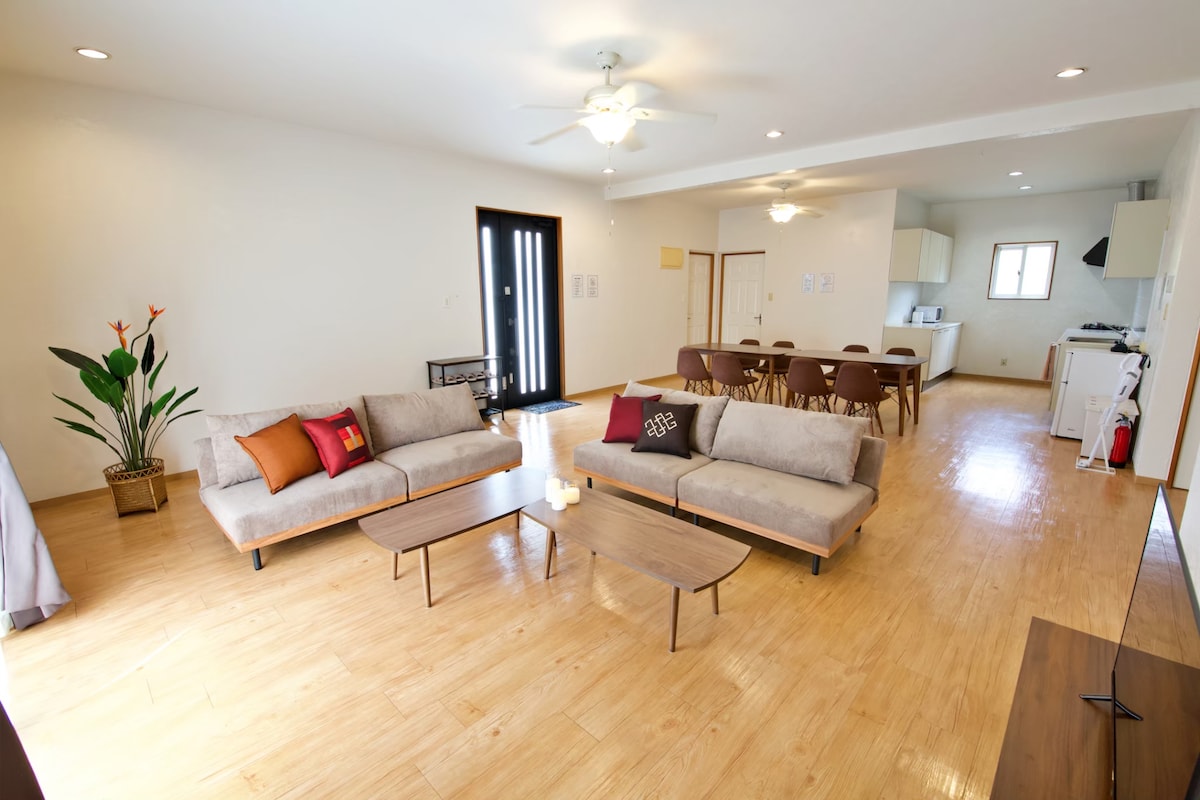 Це сучасний окінавський будинок у місті Урума для максимум 8 осіб. Найближчий пляж (пляж Ісікава) знаходиться в 3 хвилинах їзди на автомобілі. Це займає близько 30 хвилин від міста Наха на автомобілі, в якому є аеропорт і багато туристичних місць. Сподіваємося, ви чудово проведете час у цьому автентичному прекрасному районі:) Квартира 3LDK. - Ви можете дістатися до основних туристичних місць Нахи за 30 хвилин їзди. - Безкоштовний Wi-Fi