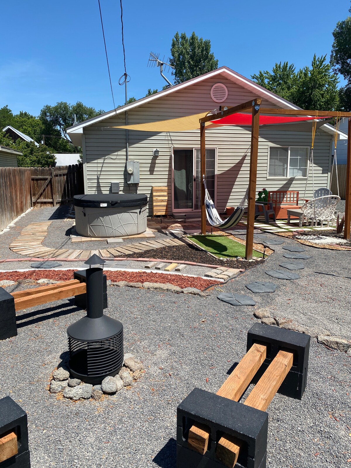 Котедж Hagerman побудований у 2020 році та розташований у місті, в декількох хвилинах ходьби від чудової їжі, продуктового магазину, центру для відвідувачів національного парку та парку. Лише 5 хвилин до річки та менше 10 хвилин до кількох гарячих джерел. На території є багато паркувальних місць, гарно озеленений, повністю огороджений трав’яний двір, патіо та барбекю, щоб насолодитися погодою. Користуйтеся садом і фруктовими деревами в сезон. Ми знаходимося приблизно за 20 хвилин їзди від Гудінга, за 25 хвилин їзди від Була та за 45 хвилин їзди від Твін-Фоллс.