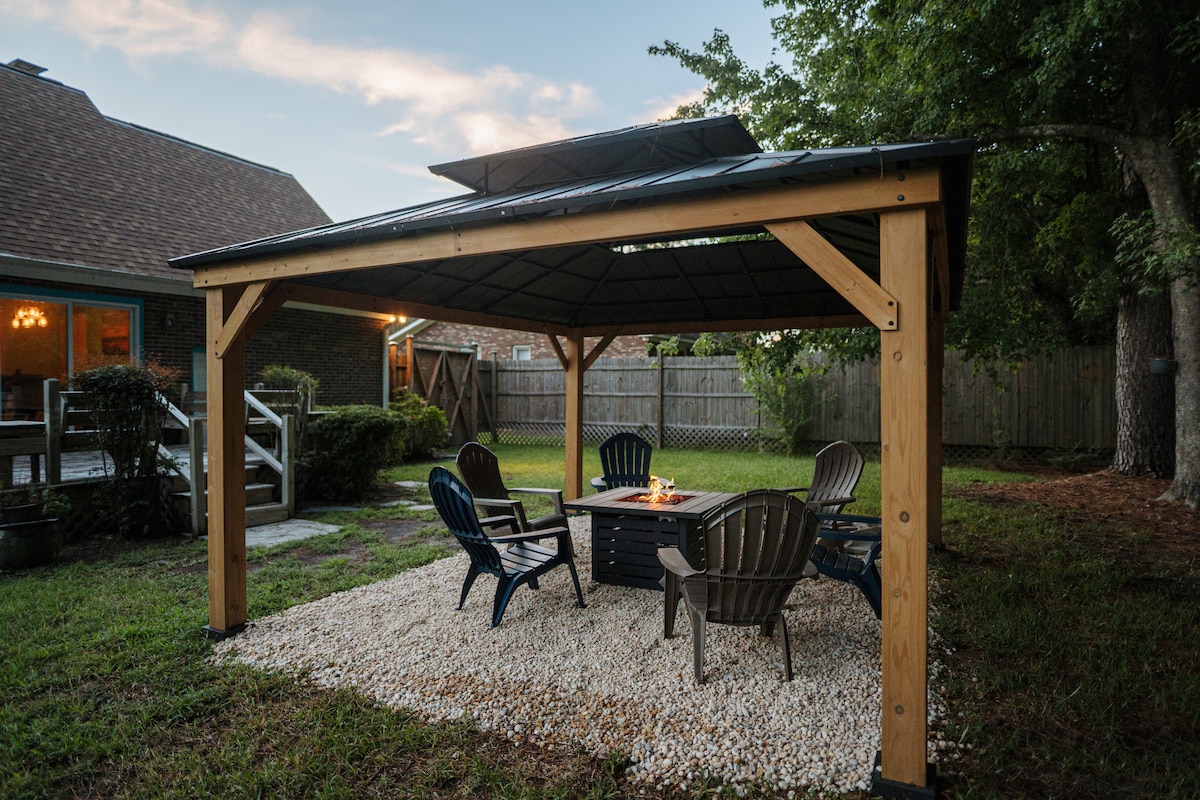 WELCOME to our fun & beachy Coastal Cottage, where you can check your worries at the door. We take care of dishes, trash ect upon checkout(NO CHORE LIST FOR GUESTS!)Designed in a coastal fashion, with an amazing arcade room! Your family and friends can unwind in the hottub, play in the arcade, enjoy the outside firepit, or take a 10 min drive to historic downtown river walk! The Coastal Cottage is a 15 min drive to Wrightsville Beach and minutes away from the major shopping area in town!