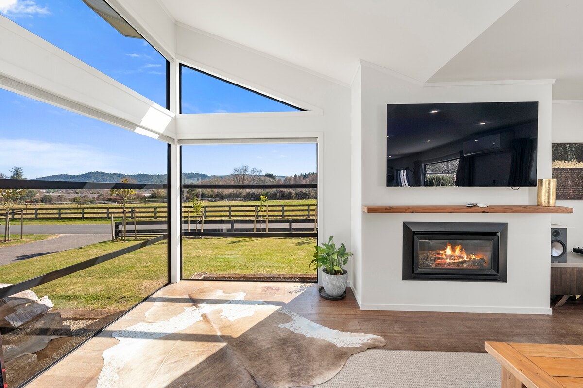 Відпочиньте в спокійному сучасному помешканні. Цей сучасний будинок середини століття розташований на пагорбі з великим видом на озеро Таупо та гори. Помешкання займає кілька гектарів сільськогосподарських угідь із конями в помешканні. Відпочиньте у вітальні відкритого плану, саду та подвір 'ї. Прогуляйтеся або покатайтеся на велосипеді вздовж струмка Уонгамата до поля для гольфу Kinloch, пляжу та озера. Прокатіть на велосипеді місцевими гірськими велосипедними стежками за 100 м від воріт.