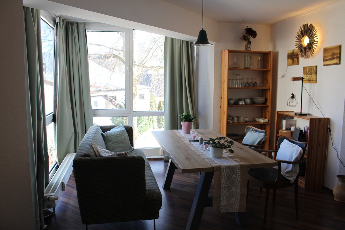 ЕДЛЕР WOHNRAUM Ваше ідеальне перебування в Цвікау чекає на вас! Центральне розташування, сучасні зручності – і гнучкі умови завдяки самостійній реєстрації прибуття. Очікуйте стильну квартиру з повністю обладнаною кухнею, високоякісною вітальнею та розкішною ванною кімнатою з душовою кабіною. Спіть спокійно в зручному ліжку з балдахіном (180x200 см) або на розкладному шкіряному дивані. Насолоджуйтеся кондиціонером, швидким Wi-Fi та балконом із видом на місто. Безкоштовне паркування на протилежній стороні вулиці.
