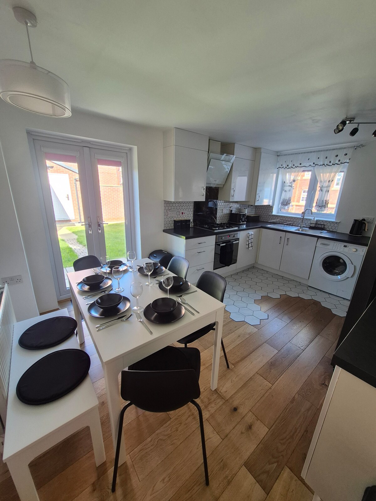 Проведіть час і відпочиньте в цьому спокійному, стильному сільському помешканні. Насолоджуйтеся відпочинком у розкішній обстановці в оточенні сільськогосподарських угідь і гарних краєвидів із домашніми зручностями. Відкрийте для себе краєвид із ліжка «super king-size», великої окремої ванни або балкона Джульєтти. Відпочиньте у великій вітальні, дивлячись улюблені фільми на 75-дюймовому смарт-телевізорі, WI-FI та об 'ємному звуку. У вас є кухня, обладнана електричною вентиляційною плитою та 2 варильними поверхнями для приготування їжі, а також обідній стіл, за яким можна їх їсти.