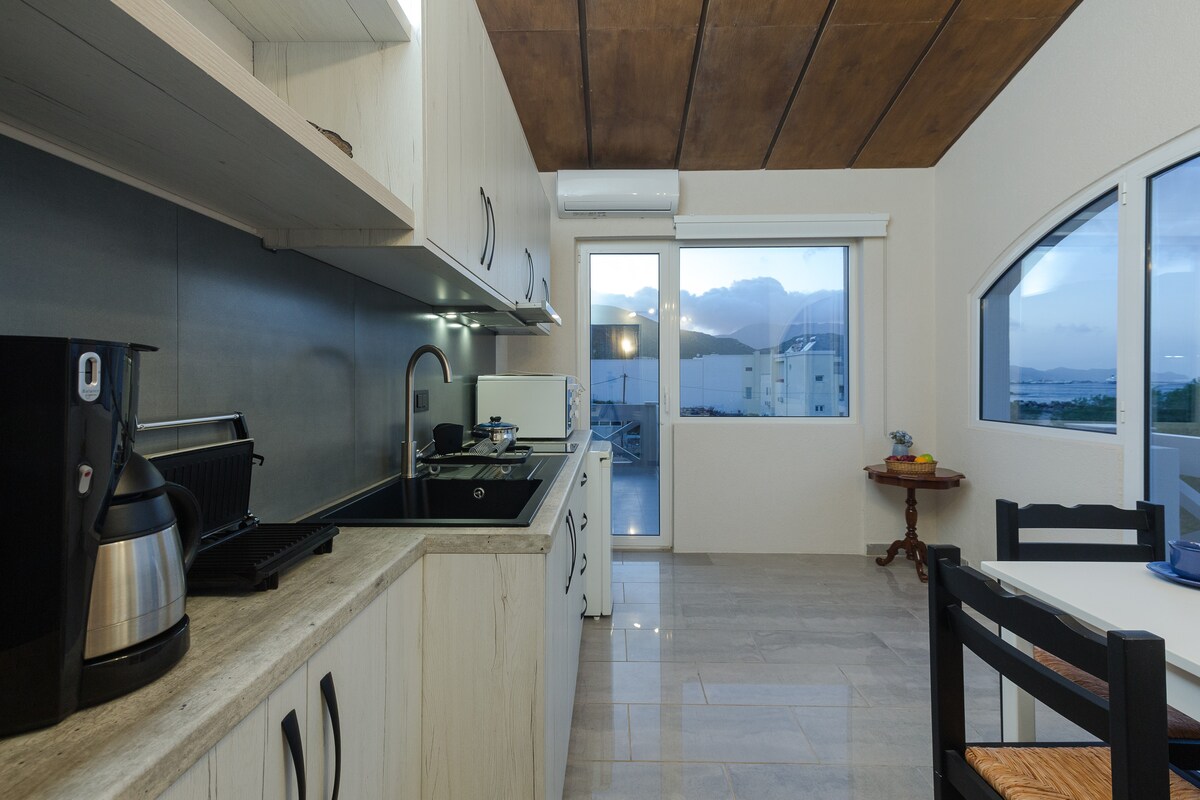 Красива, зручна і комфортна студія з 1 спальнею з художнім поворотом, що ви знайдете унікальний! У центральному, але тихому місці, недалеко від пляжу та до всього, що потрібно для вашого перебування! Тераса, безумовно, зробить ваше перебування важливим, пропонуючи безцінний панорамний вид на море. Вона грайливо балансує між блакитним морем та зеленим. Чистий, організований пляж затоки Маврос-Молос знаходиться всього в трьох кварталах! Студія вміщує 2 дорослих і маленька дитина!