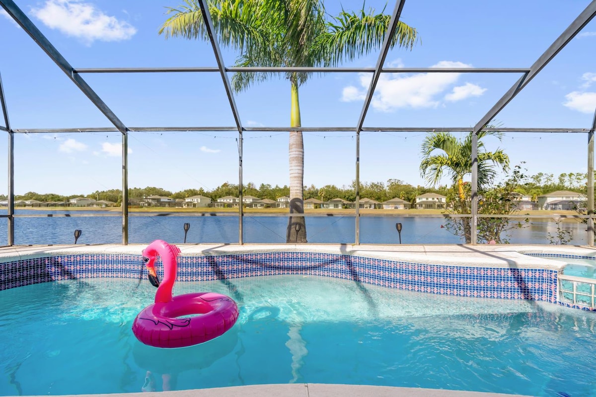 Sit back and relax in this stylish home with all the amenities you need for a fun family getaway. This home has a spacious layout with 3 bedrooms and 2 baths. We have thought of everything so you don't have to-toiletries,washer/dryer, and wifi. Enjoy your morning coffee in the screened in pool area with a beautiful sunrise and lake view or sip a glass of wine while floating in the pool. Just minutes to Theme Parks and major highways, this is the dream home you have been waiting for!