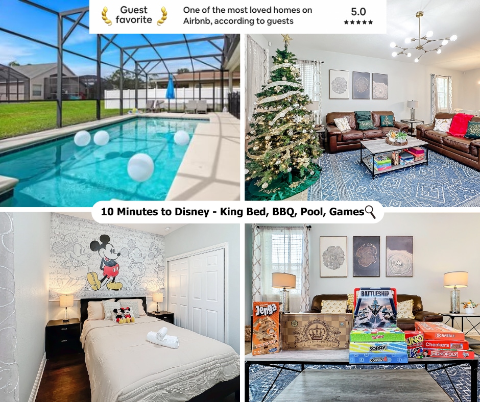 Ласкаво просимо до нашого чарівного будинку, де стикаються магія та комфорт! Цей примхливий притулок, розташований всього в декількох хвилинах ходьби від парків Діснея, ідеально підходить як для сімей, так і для любителів Діснея. Пориньте в магію з нашим блискучим басейном, розслабтеся в наших розкішних спальнях і насолоджуйтеся зручністю перебування в декількох хвилинах ходьби від чарівності Діснея. Зробіть свою відпустку казкою справжньою – забронюйте помешкання СЬОГОДНІ і нехай спогади почнуть!