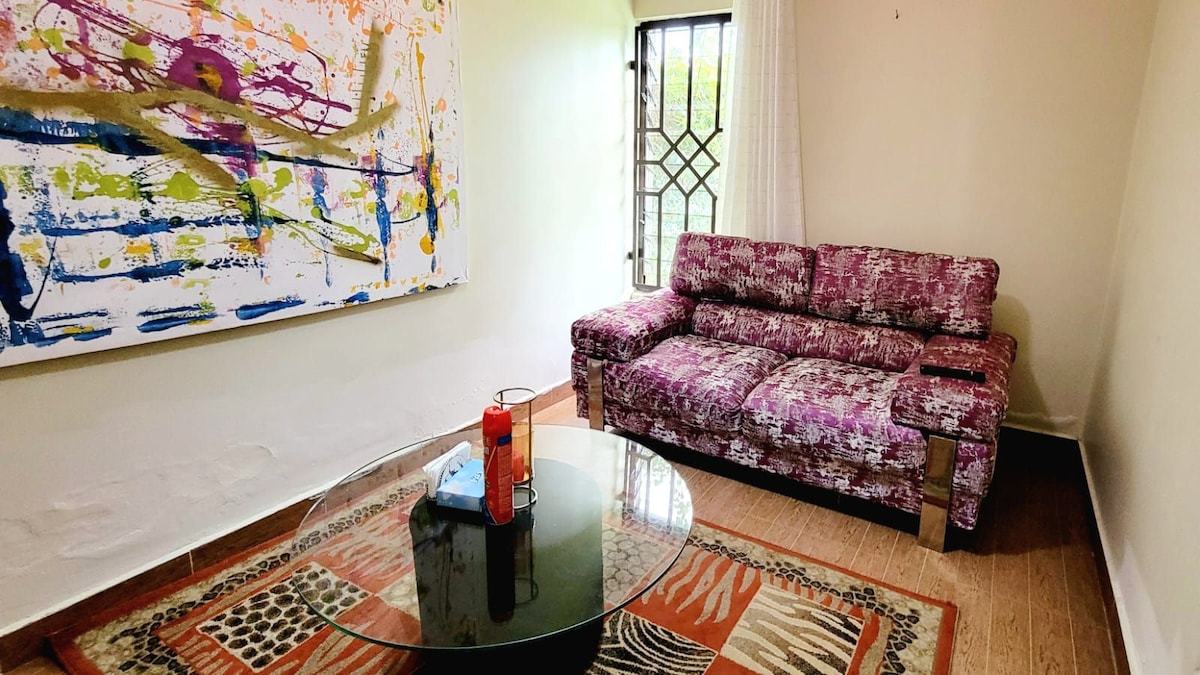 Відпочиньте й розслабтеся в цьому спокійному, стильному помешканні з садом Розташоване в Мілімані-Кісуму на території поблизу апартаментів Vittoria, для сімей, вечірок і відпочинку ,роботи та зустрічей. У спокійному закритому помешканні поруч із ГОСТЬОВИМ БУДИНКОМ STANNA з цілодобовою охороною Має зовнішній сад, де можна організувати післяобіднє зібрання або барбекю Простора вітальня та їдальня, де можуть розміститися багато людей. Додаткові гості понад 6 (шість) стягуються за особу.