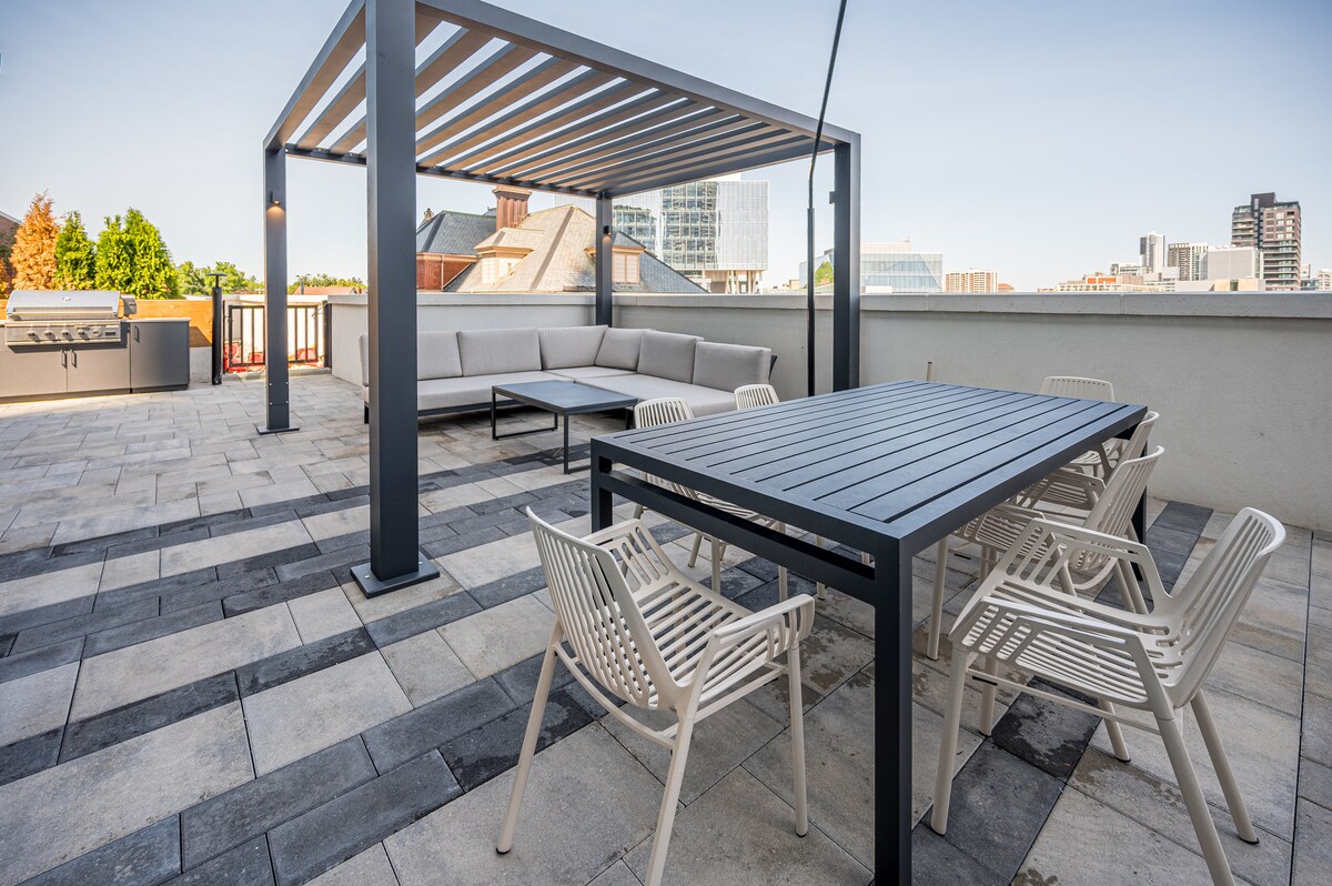 Ласкаво просимо на нашу відкриту висотку з видом на місто в центрі Кітченер-Ватерлоо, де стиль і комфорт зустрічаються, щоб створити по-справжньому незабутнє перебування. Цей блок відкритого типу з 1 спальнею, продуманий для розміщення до 4 гостей, що робить його ідеальним для пар, невеликих сімей або одиночних мандрівників, які шукають сучасний і затишний відпочинок. ✔ Повністю обладнана кухня ✔ Зручна спальня з ліжком Queen Size ✔ Відкрита концепція житлової зони ✔ Високошвидкісний Wi-Fi ✔ Безкоштовна парковка ✔️Доступ до тренажерного залу Докладніше нижче!
