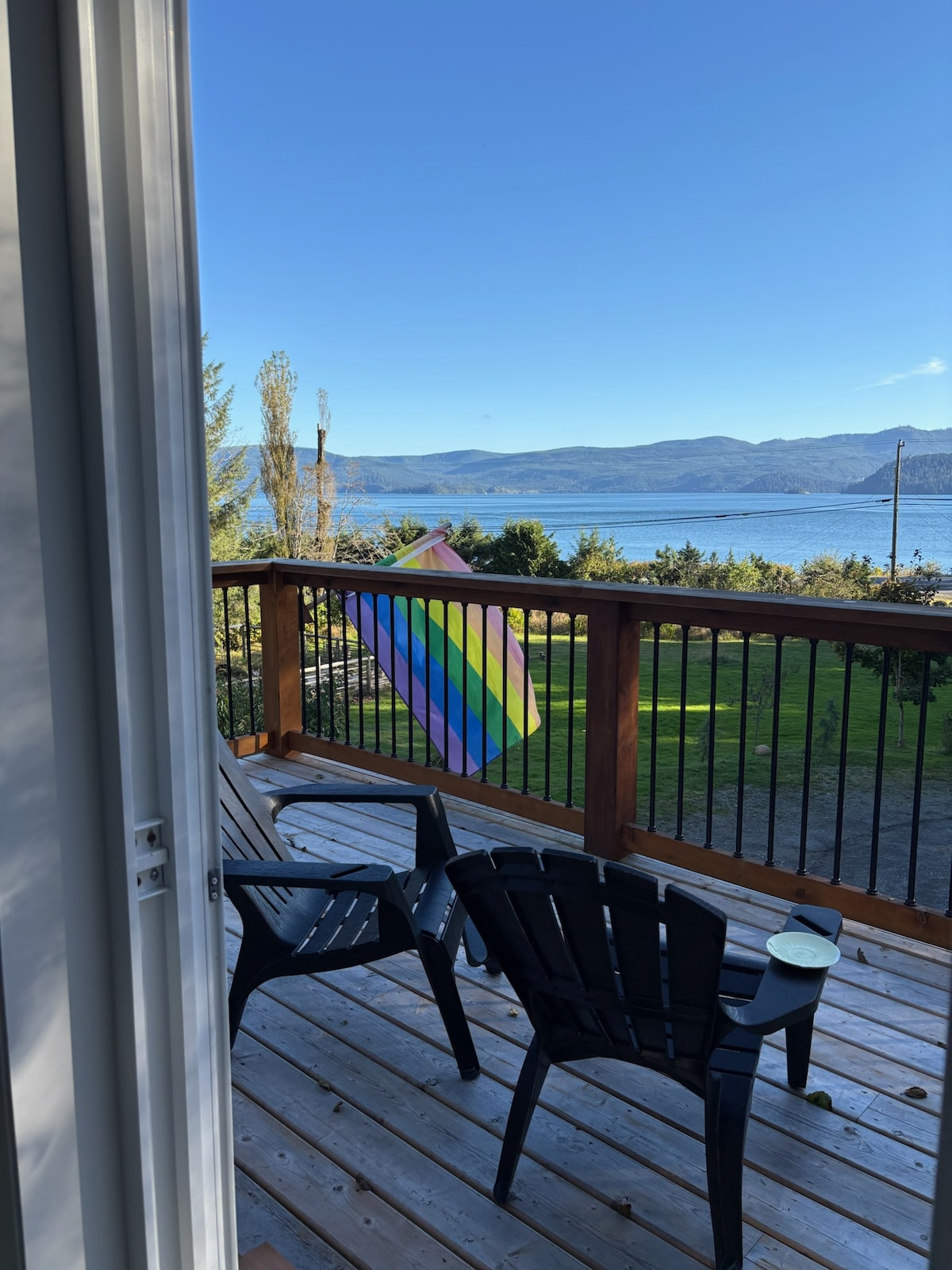 This house is perched on a hill and features an amazing unobstructed view of the inner harbour and mountains. Enjoy the view from the outdoor table on the private deck or while sitting on the sofa. There is a field right across the street where you can play bocce or frisbee (both included). There is a well-stocked grocery store (Mavericks) with adjacent cold beer/wine/liquor one minute away (by car). The space is exceptionally clean and very stylish - local photography and recently renovated.