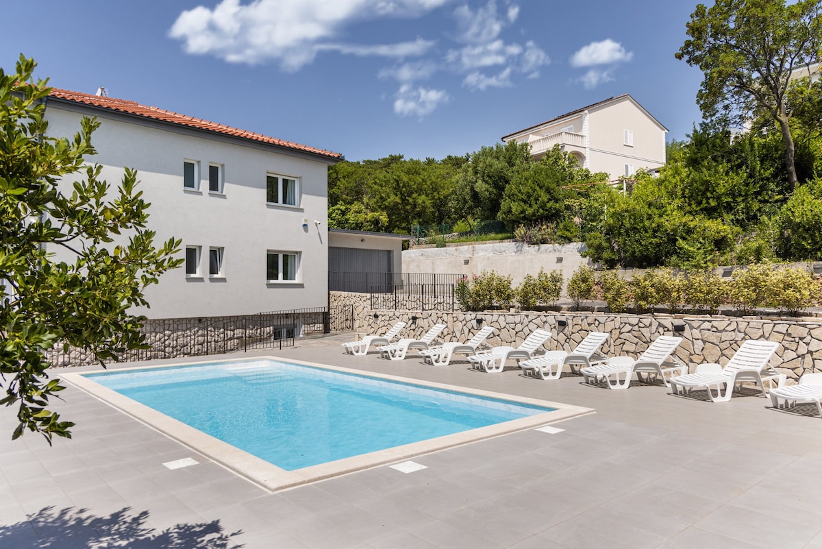 Привезіть свою сім’ю та друзів у це прекрасне місце, де з тераси гідромасажної ванни відкривається вид на море, ліс та острови, як уві сні. У вас буде відчуття, що час зупинився тільки для вас. Вранці ви прокидаєтеся в тиші, а потім чуєте звук пробудження птахів, шепіт дерев. Відчуйте, що ви єдині з природою, і лише 5 хвилин їзди відділяють вас від водних видів спорту, хороших ресторанів та розваг у динамічному Новому Винодольському або спокійних вечерь у чудовому рибному ресторані в маленькому рибальському містечку Кленовиця.